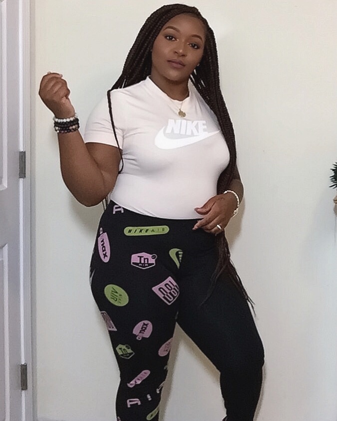So I’m back with a new, (fairly new), outfit of the day, entitled “Just Do It!” This cute little body suit and leggings set is from Jimmy Jazz, and I thought it was just the cutest, most comfy thing so I had to scoop it up. The body suit is in a size large and the leggings are a large. I’m a regular size 8 in jeans, and a medium in tops, so I could have actually went for the medium in both pieces, but for the sake of ordering online, I thought it best to stick with a large, because I didn’t want to risk anything being too small. I hope this little bit of information was helpful for anyone looking to purchase this set. Thanks For reading and returning.